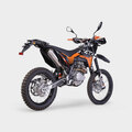 Мотоцикл оснащён защитой для кистей, задним багажником и системой запуска двигателя с помощью кнопки электростартера или рычага кик-стартера.